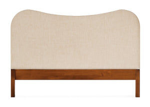 The Bonnie upholstered headboard is curved with soft, rounded corners and a gentle wave-like top edge. The base and legs are made with clean straight lines that are simple yet refined, complementing the upholstered headboard.